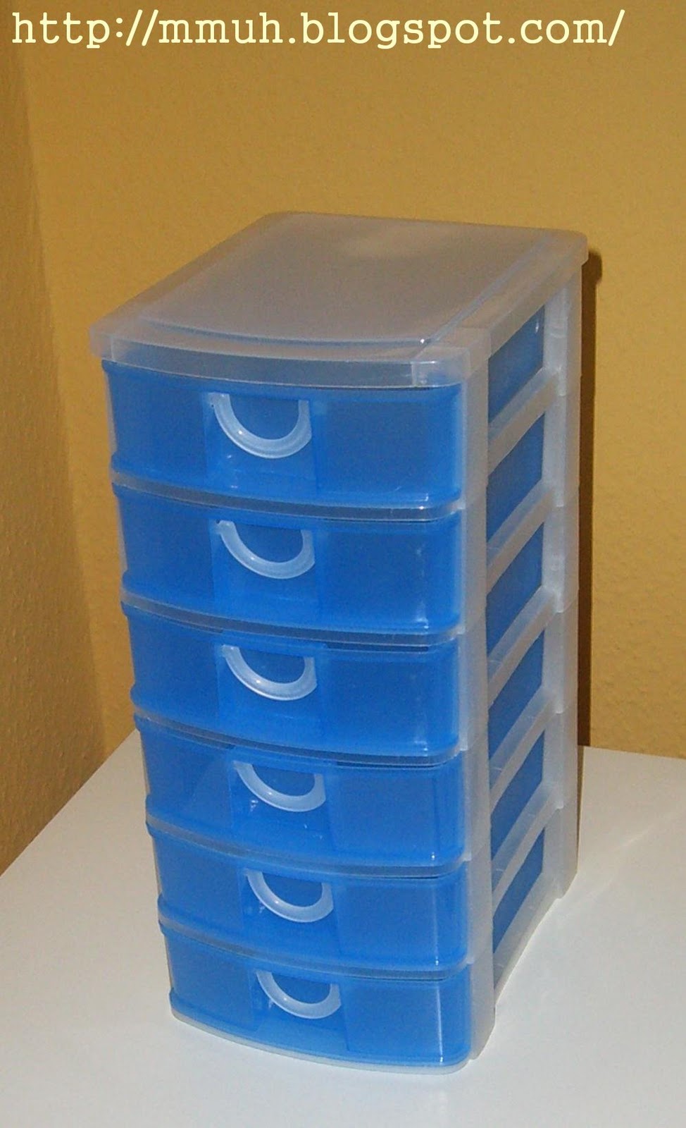 Da hab ich in einer Lade alles für die Lippen, drunter alles für die Augen. Da drunter hab ich die Sachen fürs Gesicht (Make Up, Puder, Abdeckstift,..). Die Nagellacke hab ich in einem kleinen Karton (da brauch ich bald einen größeren) und die Duschgels und Shampoos sind im Bad.