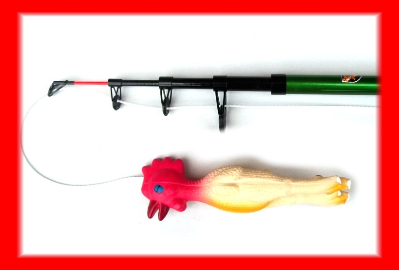 Pewee, die, die das Angeln nur zum Spaß machen haben normale Stöcker mit Schnur und Spielie dran. Andere und die, die wie wir Antijagdtraining machen wollen haben eine Reizangel aus dem Handel.