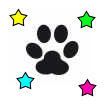 Ich hab mal selber was "gebastelt", Pfote ist aus dem Internet (google) und Sterne hab ich selbst gemacht, sollen nur nich so symetrisch sein, sondern bissl versträut. Nur mir kams eher auf die "Form & Farbe" der Sterne an, als auf die richtigen Stellen: