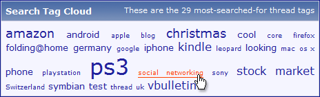 Alle Benutzer, die die Schlagworte anklicken, um entsprechende Themen zu finden, tragen damit zur Bildung einer Begriffswolke (engl. Tag Cloud) bei. Diese Begriffswolke stellt visuell dar, nach welchen Schlagworten kürzlich und häufig gesucht wurde. Je beliebter ein Schlagwort ist, desto größer wird es dargestellt.