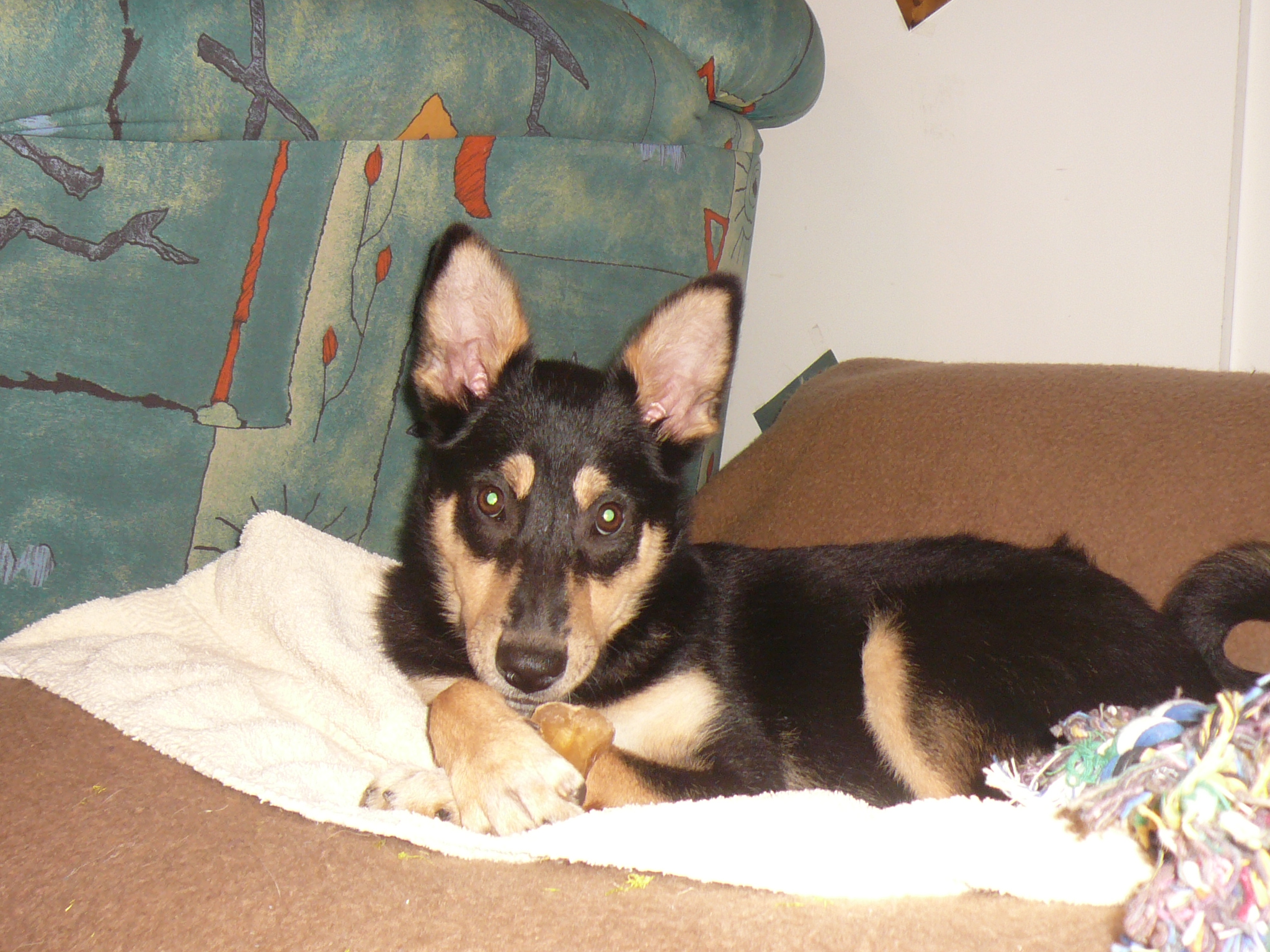 Zu Hause und eigentlich werden die tollen Kauknochen zerrkaut. Milchzähne können ja so grausam sein. ;D