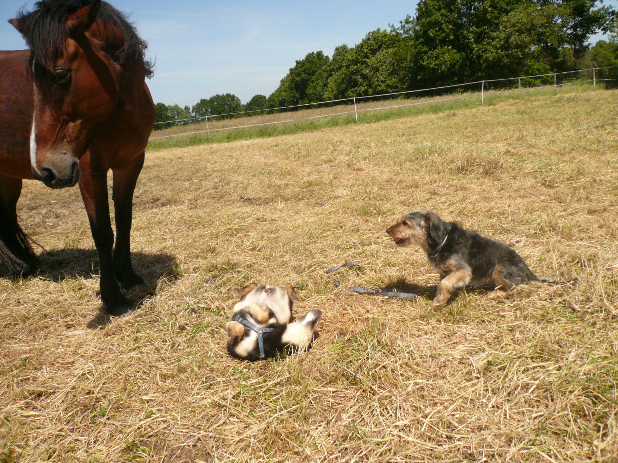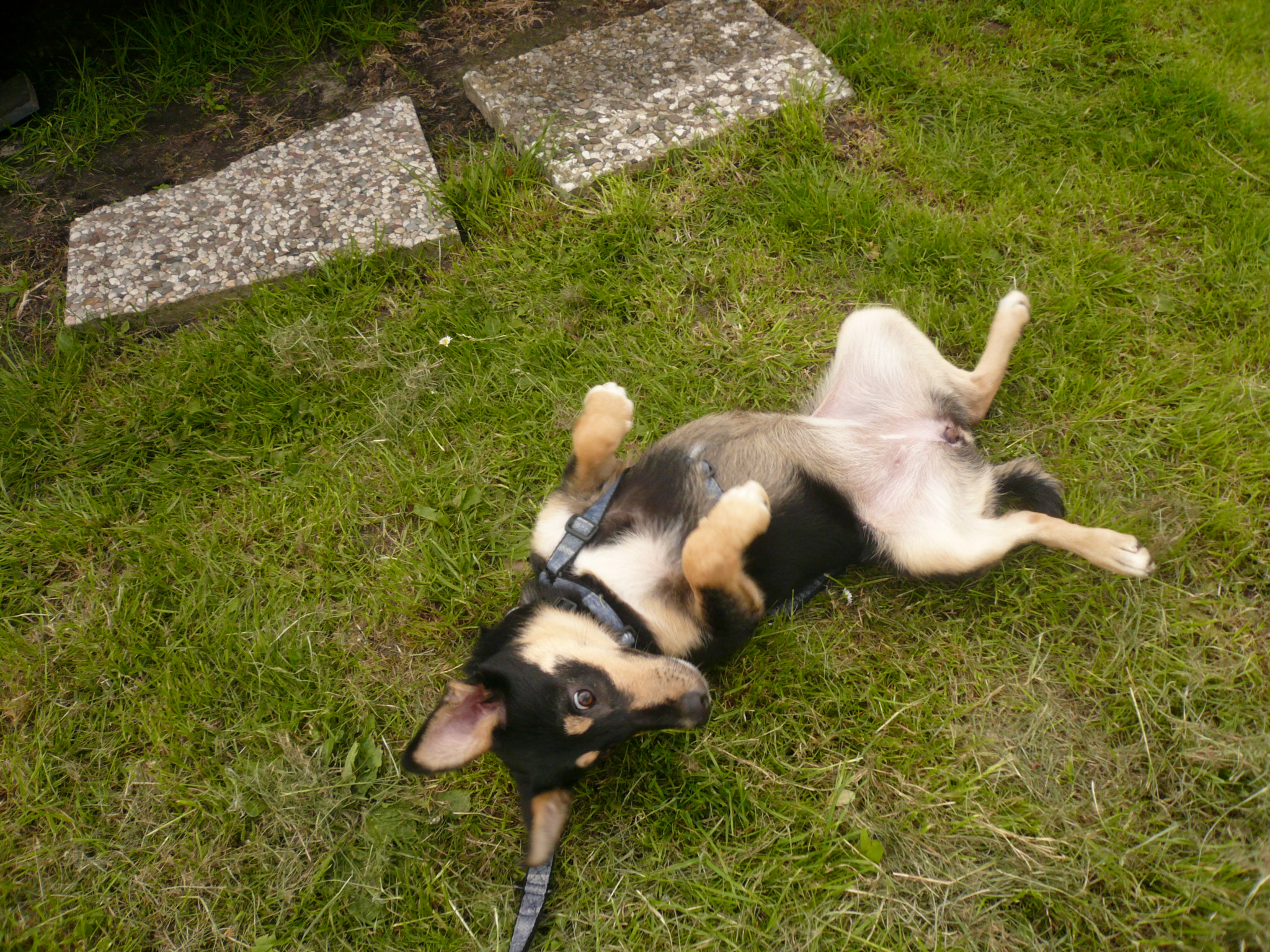 Lange dauern solche Pausen nicht und da wird sich natürlich erst einmal im Gras gewälzt: